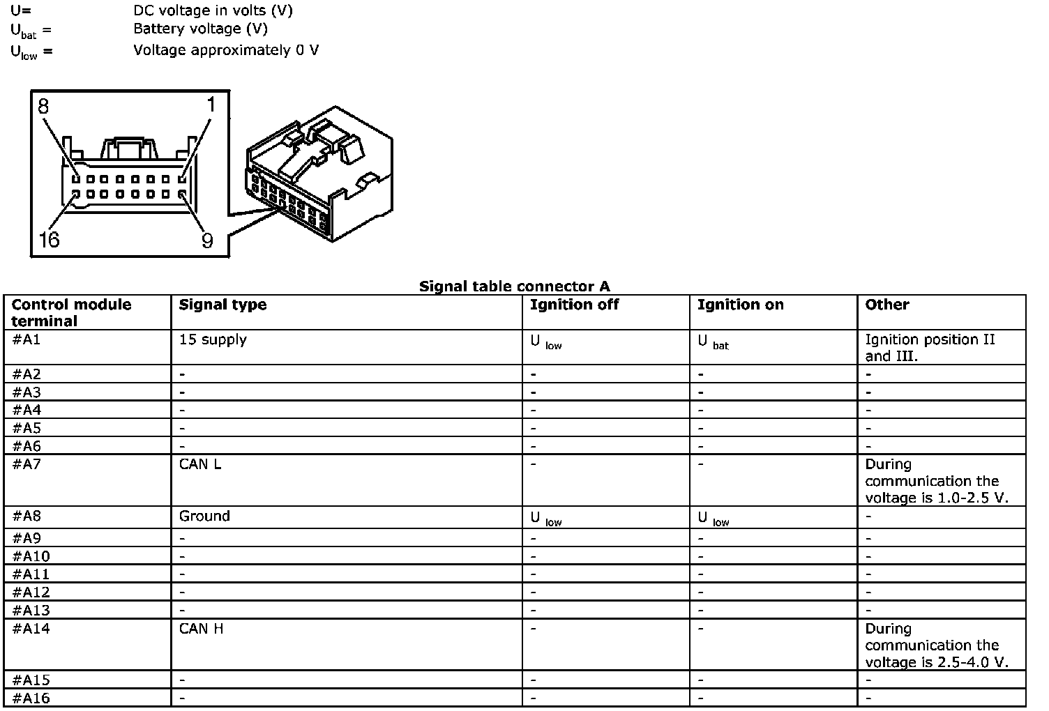 All values specified below are between the relevant terminal and terminal #A8 (power ground).