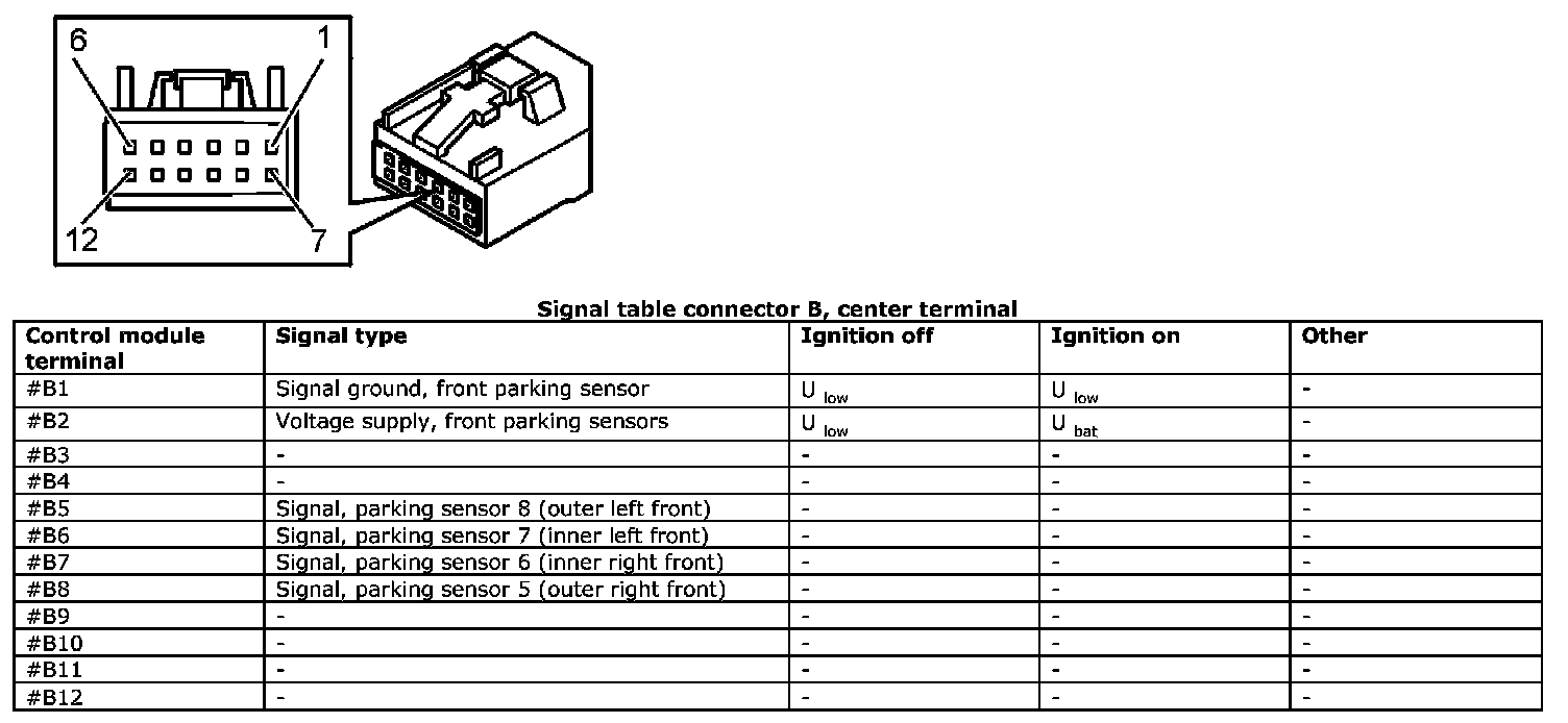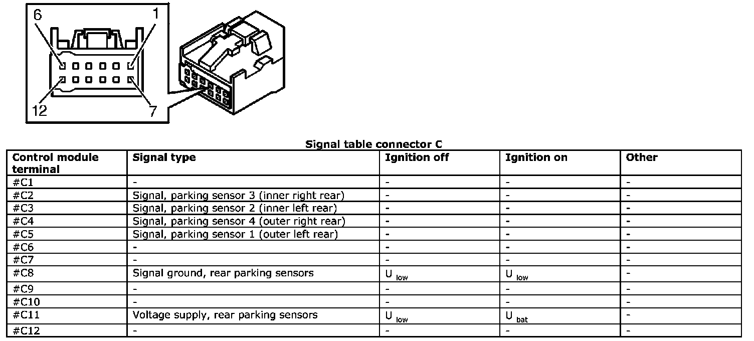 Signal Specification, Parking Assistance Module (PAM), L.H.D