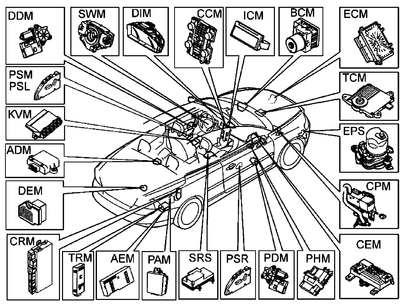 The number of control modules in the CAN varies depending on the level of equipment, the vehicle model and the structure week.