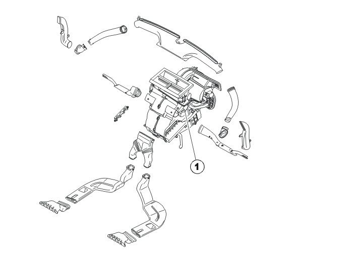 By changing the direction of the dampers in the distribution housing, air is directed from the fan through the various air ducts out to the passenger compartment.