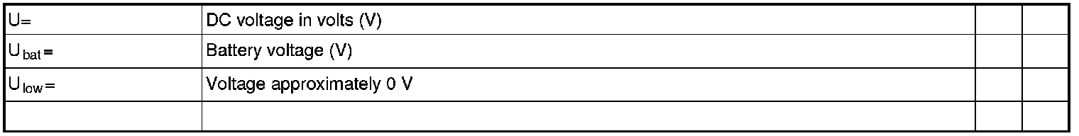 All the values given below are between the terminals stated in column 2 and terminal #B4 column 1 (power ground).