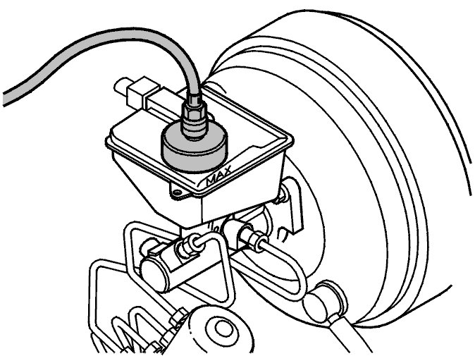 Pressurize the brake system. Check the brake fluid reservoir connector.