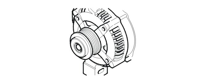 Certain generators are equipped with a freewheel between the rotor shaft and the pulley. The freewheel on the pulley can be seen on the internal hexagonal section of the center of the pulley. Using the freewheel, the generator rotor shaft can only rotate freely in one direction. This minimizes any jerking in the belt transmission.