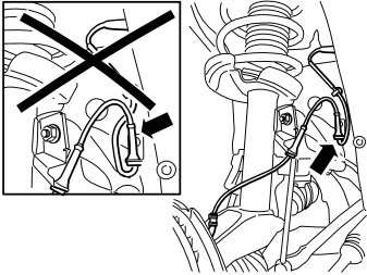 Thoroughly check that the wheel sensor cable is routed as illustrated.