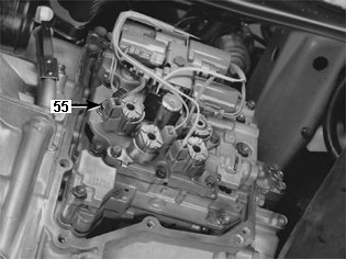 Install the cable harness for the transmission. Ensure that the guide for the connector comes between the lugs on the transmission. Ensure that the cable harness is secured to the holders on the control system.