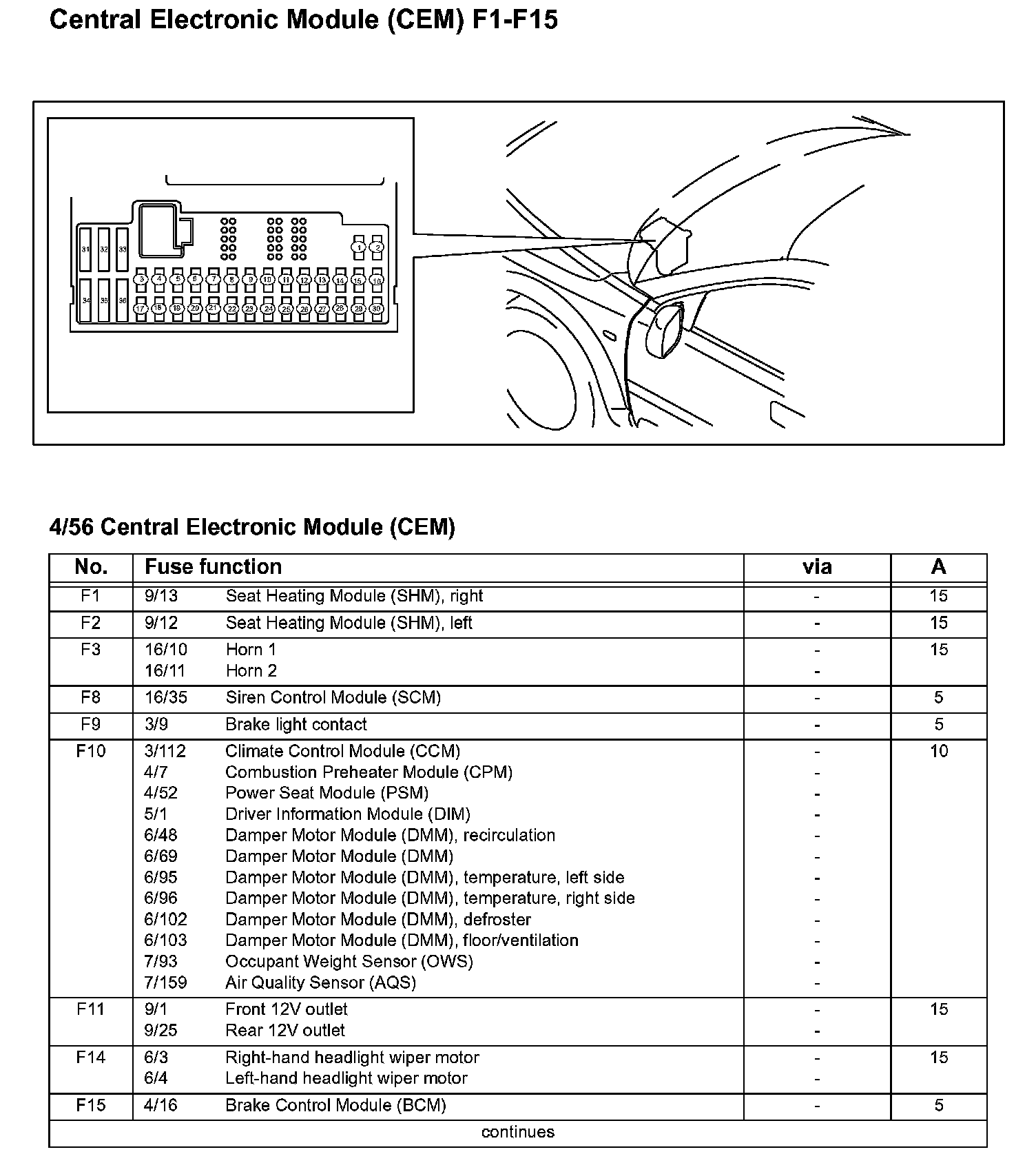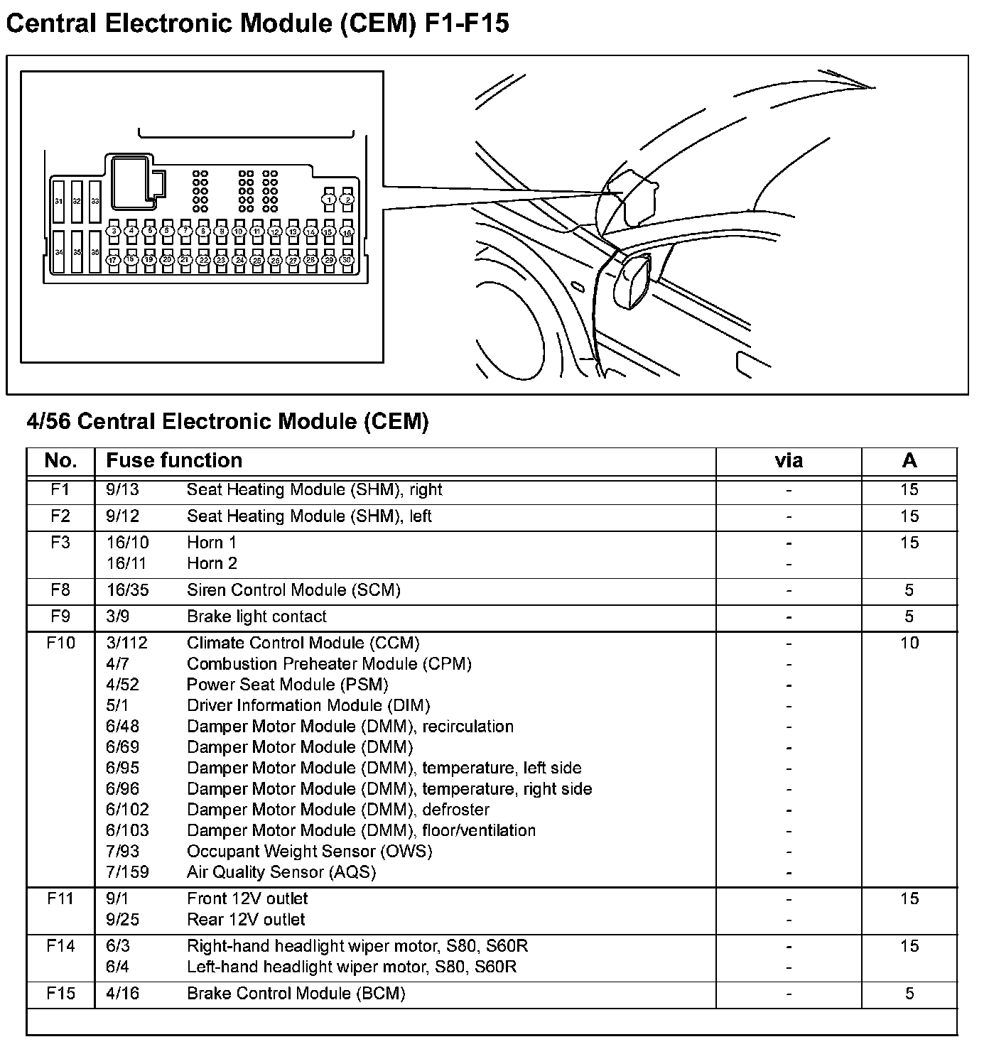 Central Electronic Module (CEM) F1-F15: