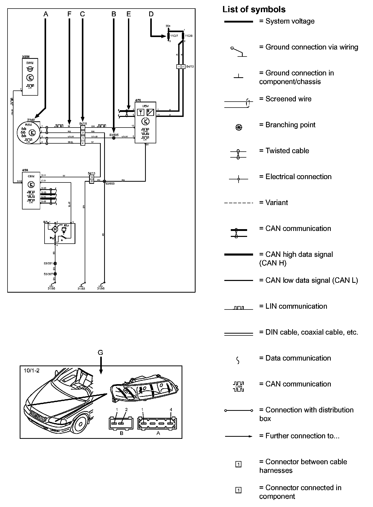 Today's cars contain CAN and LIN networks that transfer information. Connections to these networks are not shown in their entirety in the respective wiring diagram. Complete information on CAN and LIN communication is found in "Control modules" in the Information Bus.