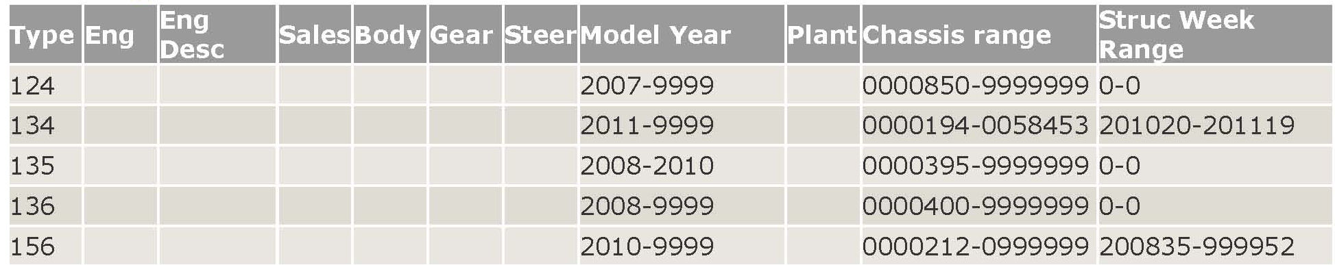THIS DOCUMENT SUPERSEDES THE PREVIOUS RETAILER TECHNICAL JOURNAL *25431* DATED 12-16-2011. Vehicle types added. PLEASE UPDATE YOUR FILES.