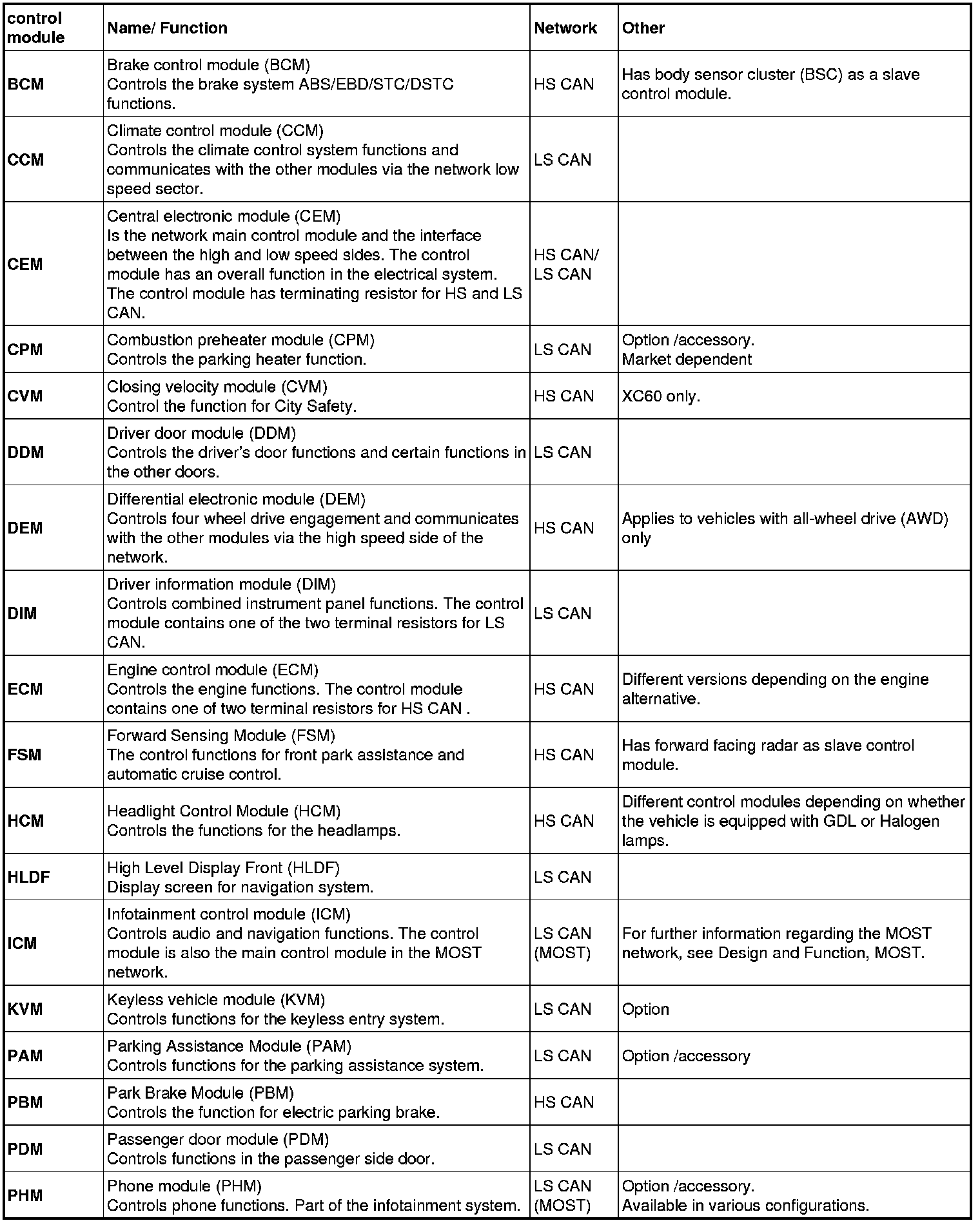 The number of control modules in the CAN varies depending on the level of equipment, the vehicle model and the structure week.