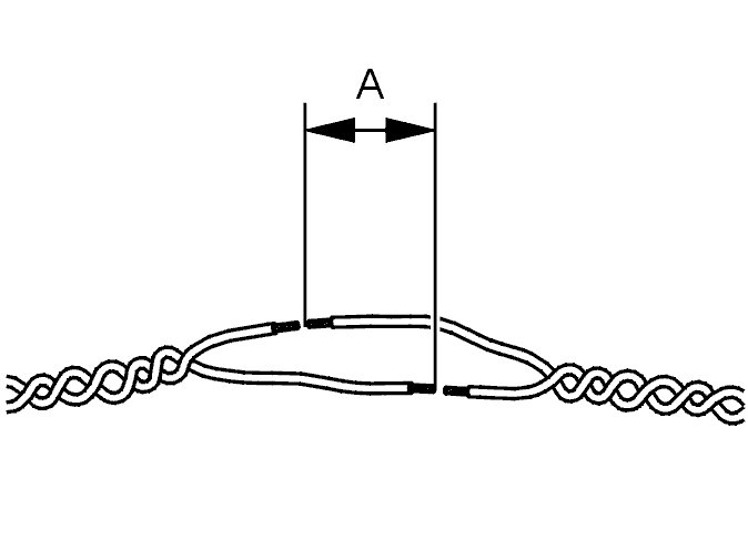 Cut the cables so that there is approximately 40 mm between the splices (center to center) (A).