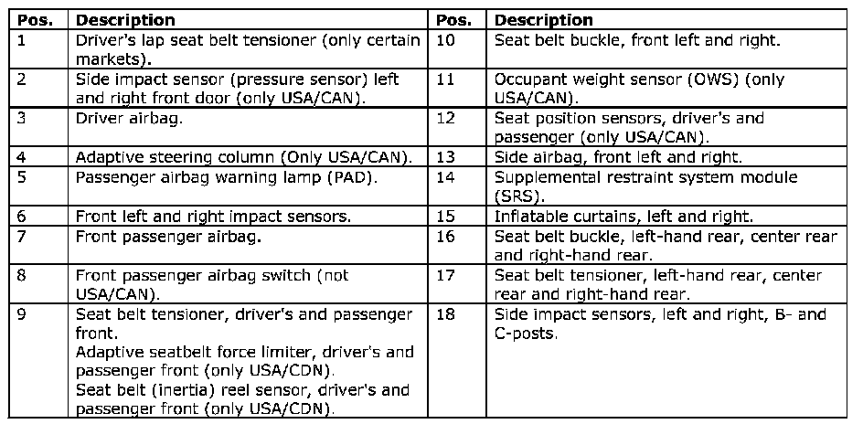Restraints and Safety Systems: Locations