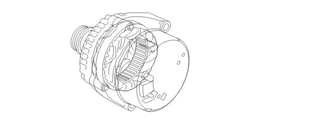 The stator is fixed and consists of grooved plates which are insulated internally and pressed together onto a fixed plate unit. The stator winding coils are positioned in the grooves. They are delta connected at 120° and provide a three phase alternating current to the rectifier bridge.