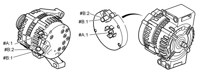 For 6 cylinder engines the generator's connectors are axially positioned, straight out from the rear end.