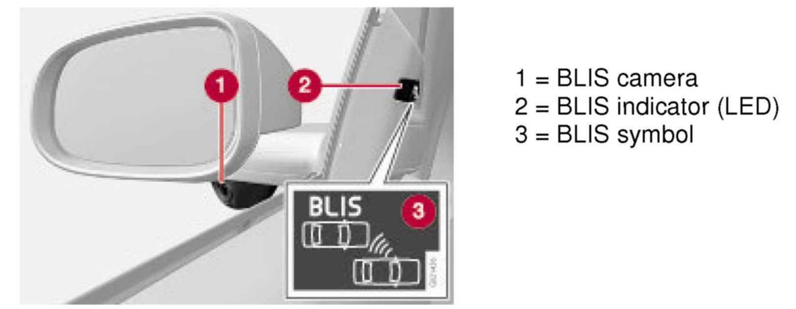 The BLIS system has a self diagnostic system to inform the driver about potential decreased system functionality. The diagnostic system software (SW) is included in the camera module units and the LH - RH cameras operate independently of each other. If either one of the camera's meet the criteria for decreased functionality the driver will be informed via flashing LED indicators and/or DIM message.