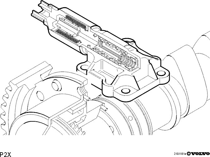 The damper motor is controlled by a power stage integrated in the engine control module (ECM) using a pulse width modulation (PWM) signal. The torsion from the opening and return springs in the throttle unit is also used. If there is a fault in the engine control module (ECM) so that the throttle unit cannot be operated or supplied with power, the springs in the throttle unit will turn the throttle disc to the limp home position (return position). This return position gives a throttle angle large enough to allow the car to be driven to a workshop, although with considerably reduced drivability.