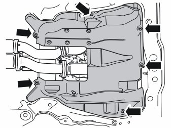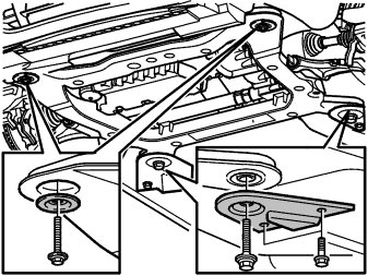 Install the sub-frame's four screws together with the sub-frame's brackets and engine heater, if installed.