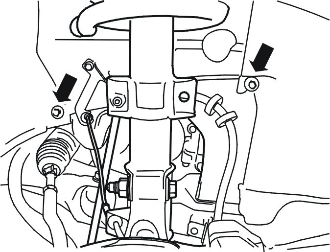 Install the 2 x M10 screws, by the suspension turret on both sides.