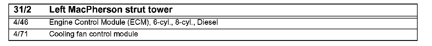 31/2 Ground Connection, Left MacPherson Strut Tower: