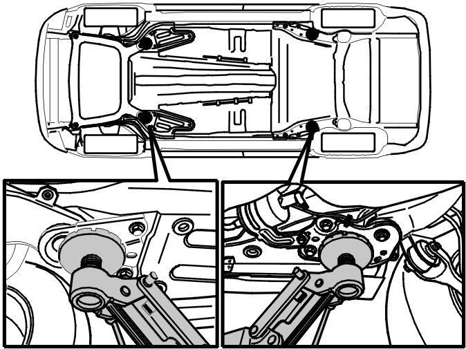 When jacking the vehicle, the jacking points given below must be used. The jacking plate must have a rubber pad to prevent damage to the vehicle.