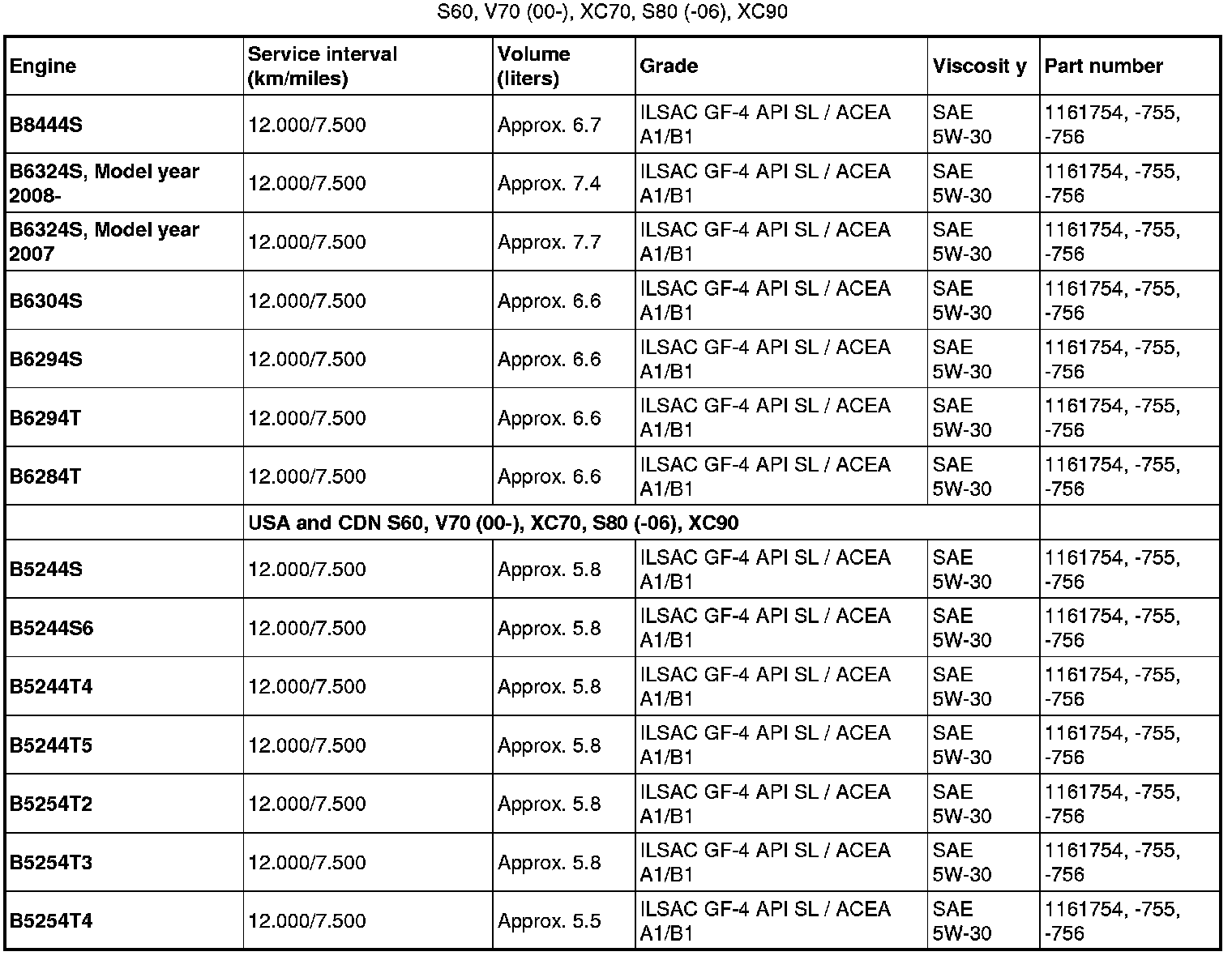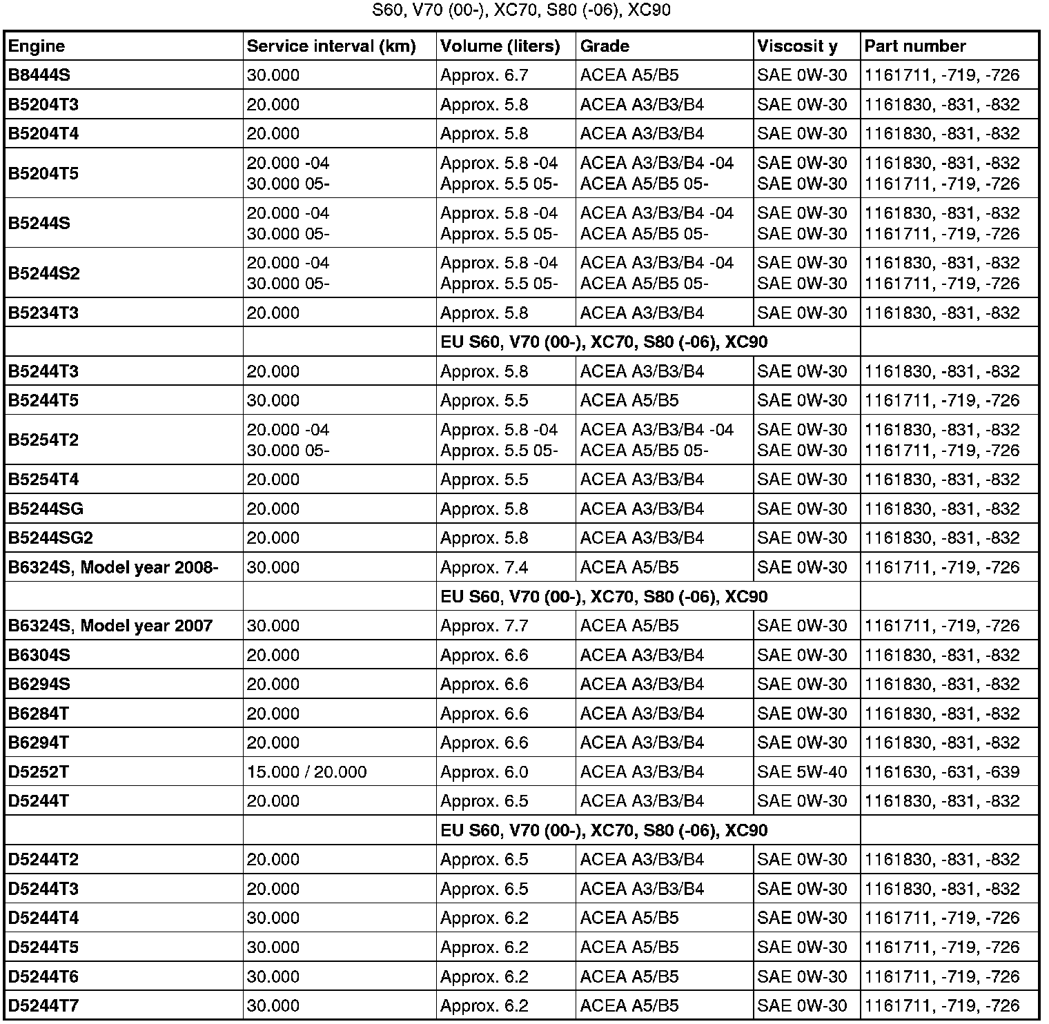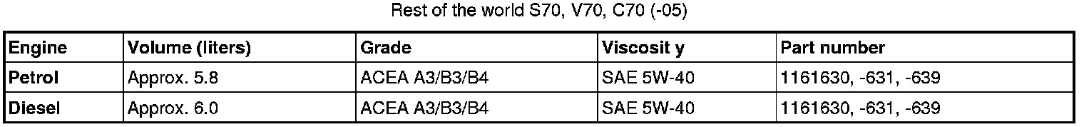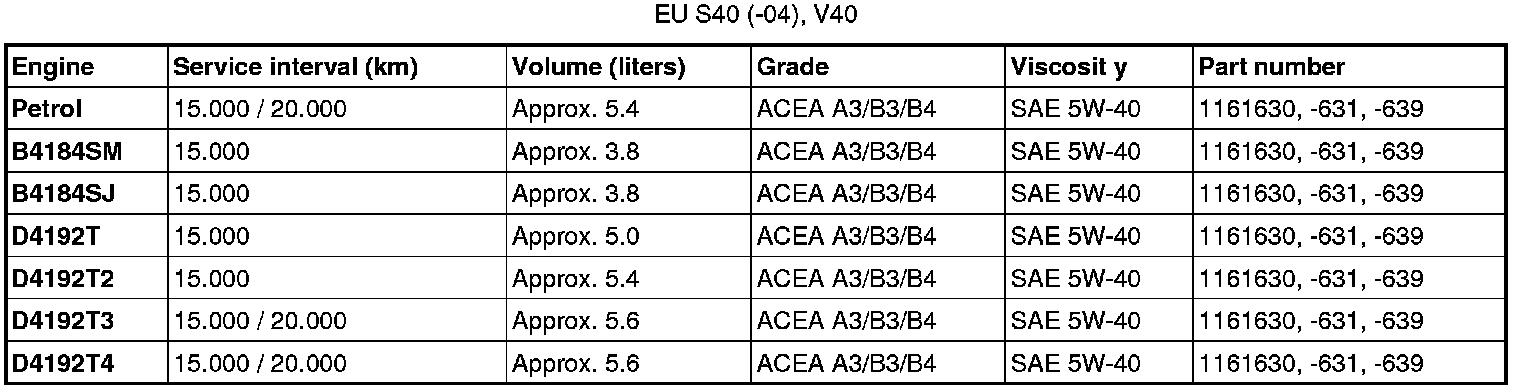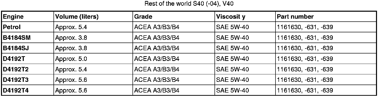 Oil grade ACEA A3/B3/B4 can not be replaced by any other oil other than the one prescribed in the table for engines D5244T, D5244T2 and D5244T3.