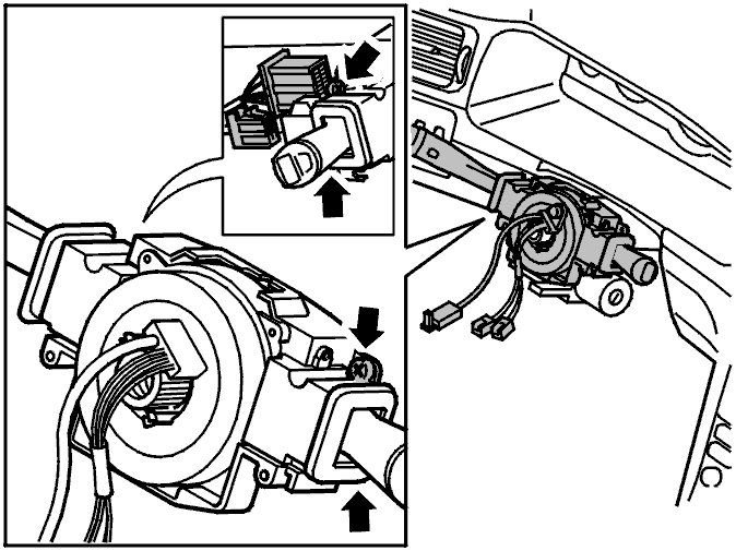 - the control module with stalks and the contact reel by releasing the catches on the underside
