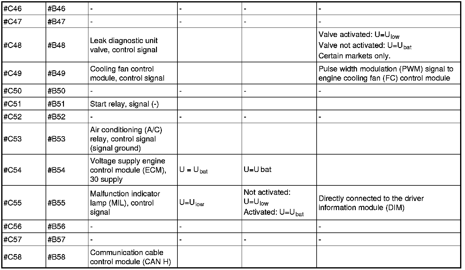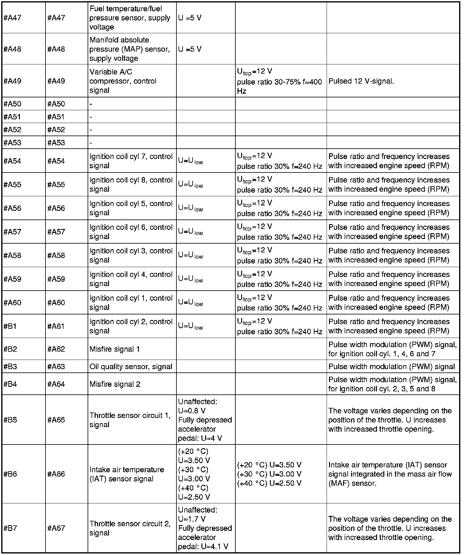 Signal specification, engine control module (ECM)