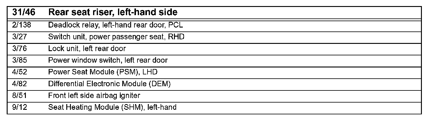 31/46 Ground Connection, Rear Left Seat Riser: