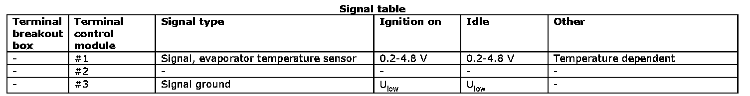 All the values given below are between the terminals stated in column 1 and terminal #A16 in column 2 (signal ground). This applies unless otherwise indicated in brackets.