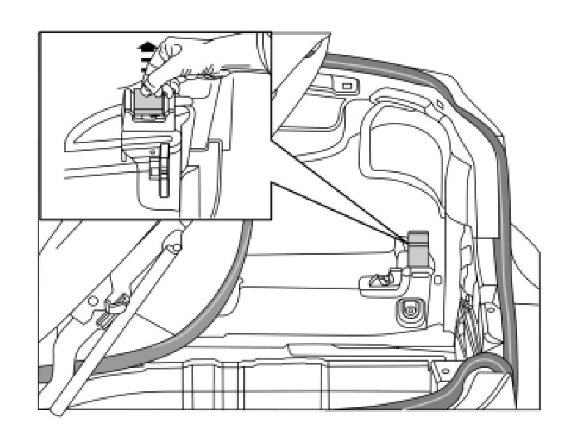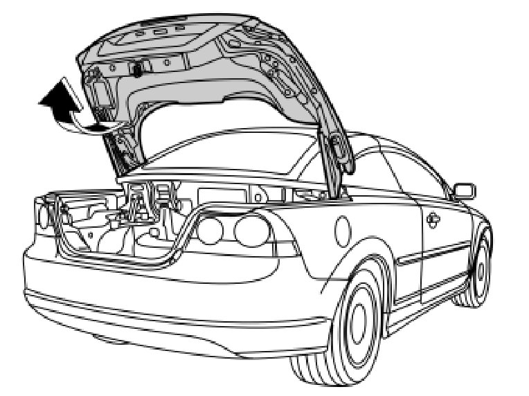 - Remove the boot lid's emergency opening handle by pressing out the pin at the eye and then unhooking the wire.