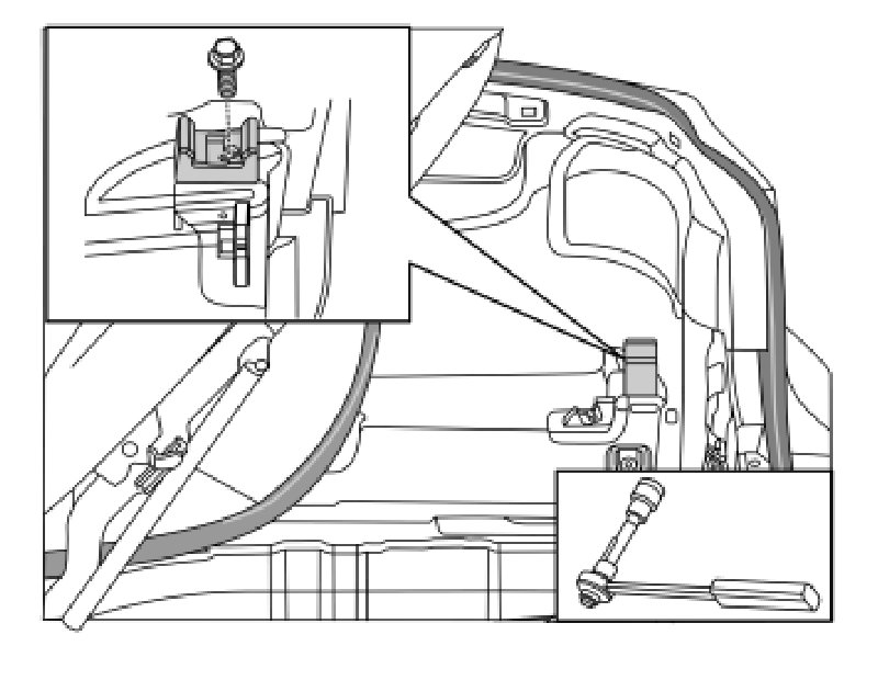 - Remove the screw and the roof's stop bracket.