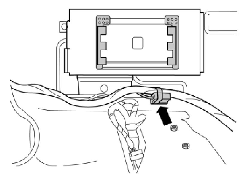- Locate the 4-pin green connector from the accessory electronic module (AEM) taped to the vehicle's standard cable harness.