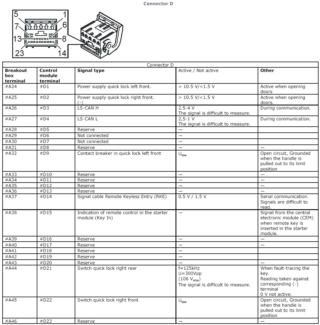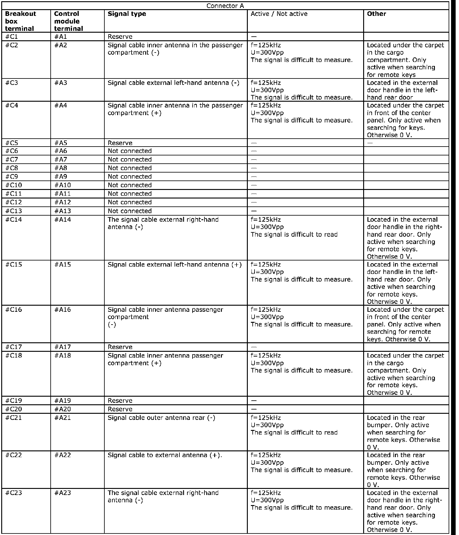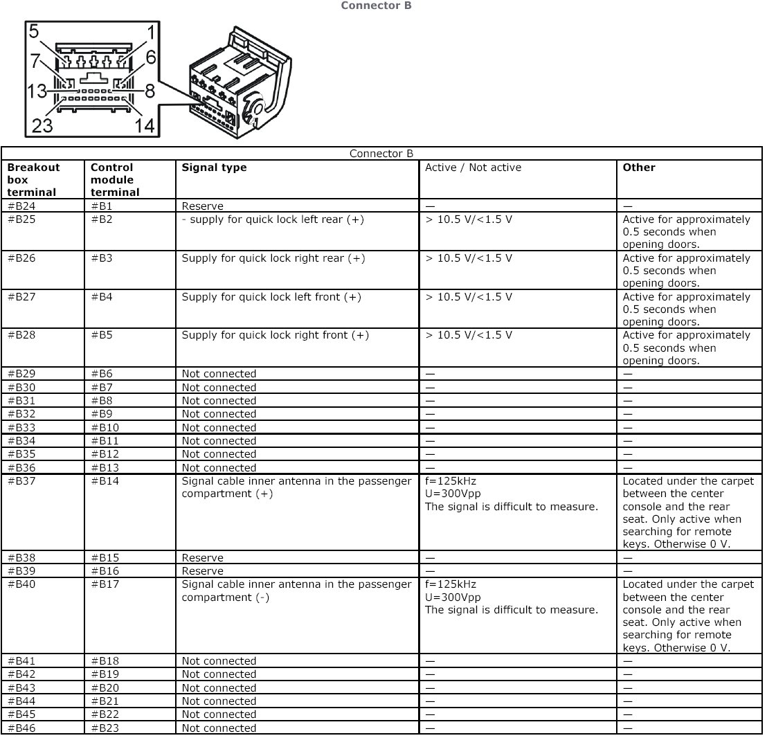 All values given below are between the terminals stated in column 1 and terminal #B4 (power ground). This applies unless otherwise indicated in brackets.