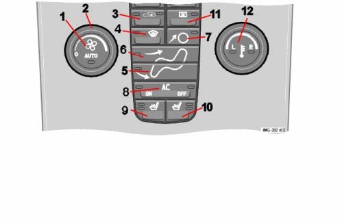 - Set the recirculation button (3) to "On". Cars with air quality sensor (AQS) to "man"
