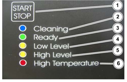 - High level of cleaning fluid, yellow lamp (5)