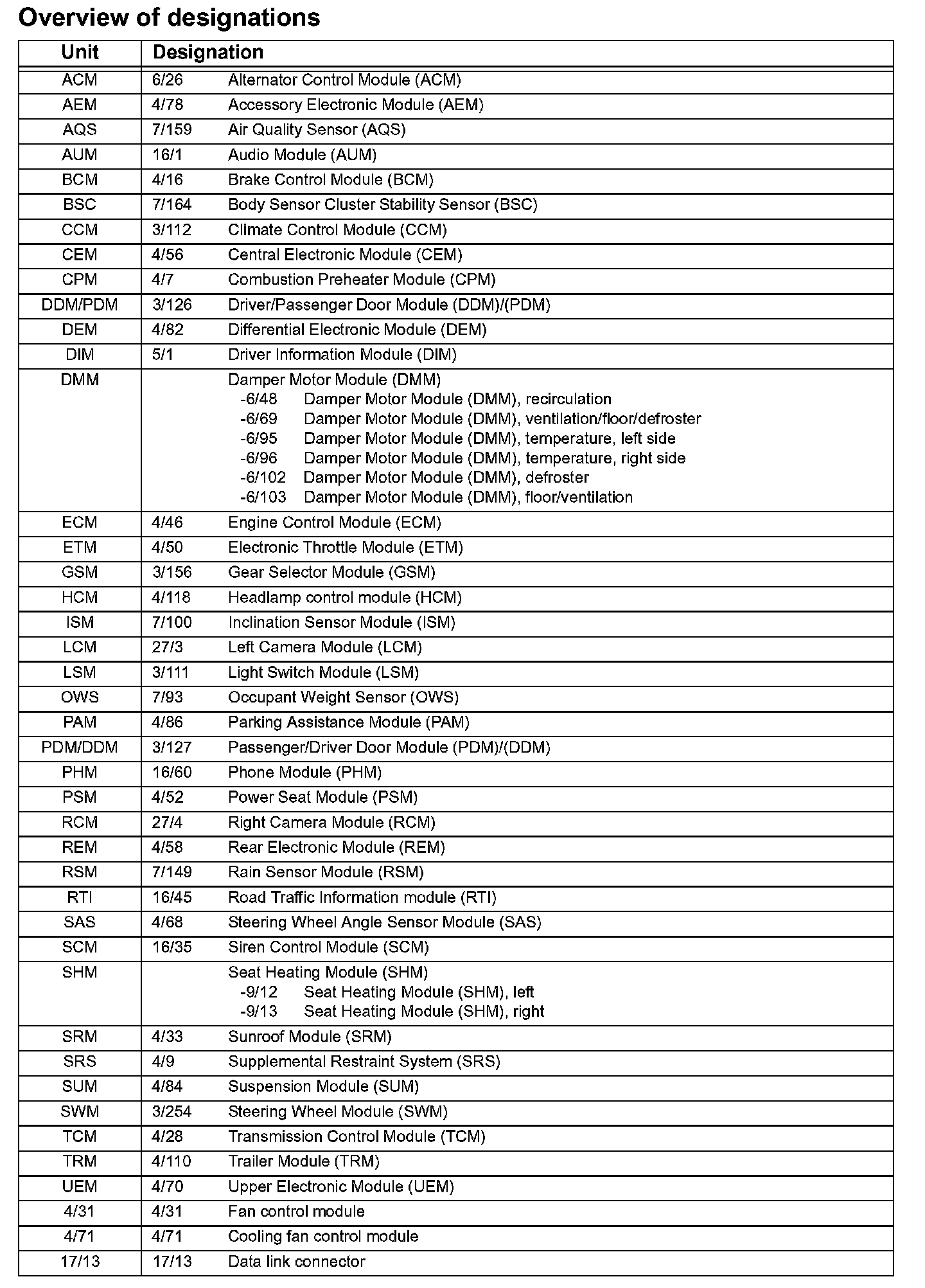 Overview Of Designations: