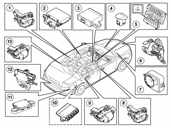 9. Remote Receiver Module (RRX), Vehicles without keyless entry (only Remote receiver (RKE) for the Japanese market)