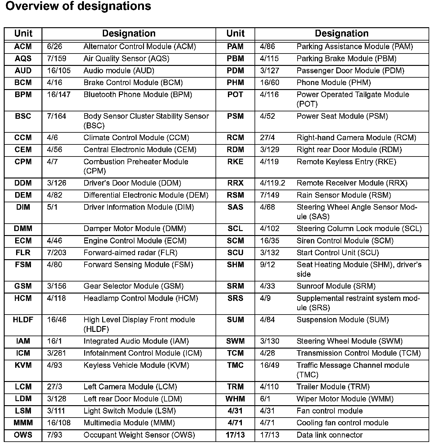 Overview Of Designations:
