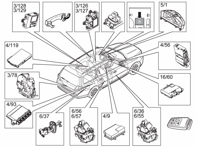 Note! This document describes the central locking system in cars with a keyless vehicle module (KVM). Some components are different from the standard central locking system. This document outlines the main functionality of the central locking system with keyless entry. For more detailed information about the keyless entry system, see Design and Function, keyless vehicle module (KVM).