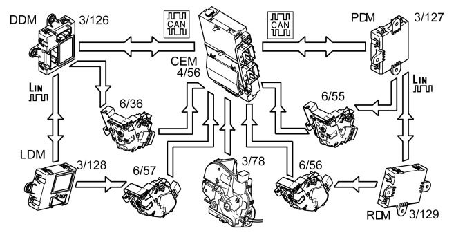On vehicles with a manual transmission, the Central electronic module (CEM) receives information about the vehicle's speed from the Brake control module (BCM). At the same time the accelerator pedal must be partially affected in order for locking to be carried out.