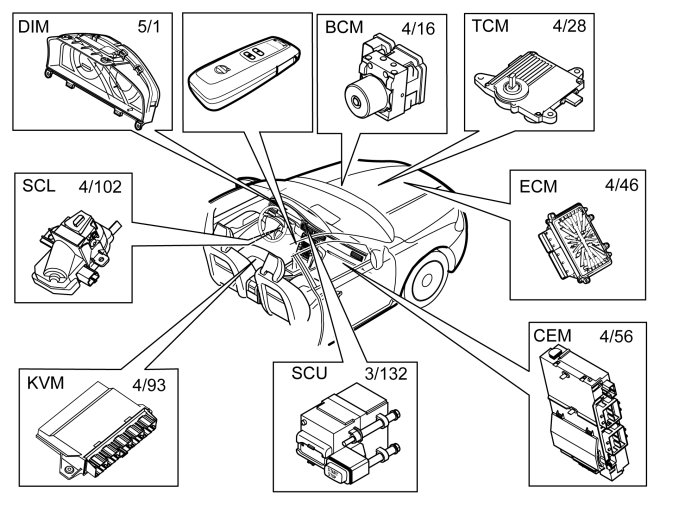 - Keyless vehicle module (KVM) (only vehicles with the keyless locking system)