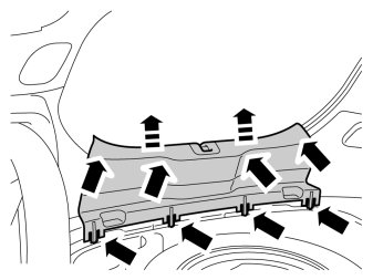 - Fold the panel inwards. Release it from the anchorage eyelets and lift it out of the spare wheel well.