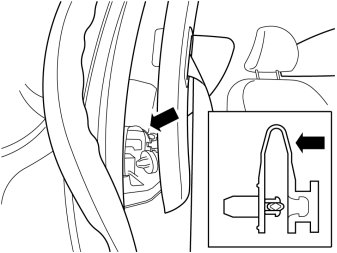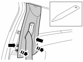 - Detach the B pillar panel at the rear edge by prying the sides using a weatherstrip tool until the two clips release.