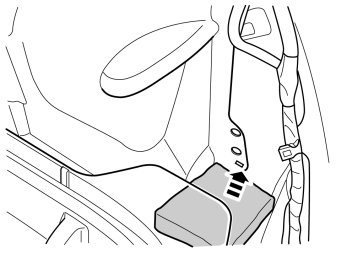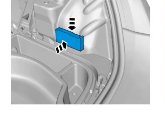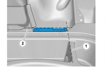 - Position the control module along the rear edge of the rectangular storage compartment in the spare wheel well (dotted line 1).