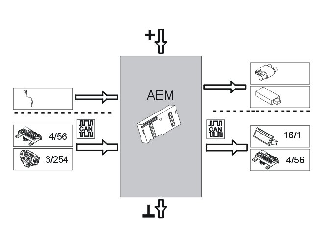 The function of the accessory electronic module (AEM) is to allow certain accessories to exchange information with the controller area network (CAN) of the vehicle. The control module functions as an interface between accessories, which are not prepared for Controller area network (CAN) communication, and the Control area network (CAN) of the vehicle and its functions. This exchange of information means that accessories can be installed with greater functionality and higher quality.