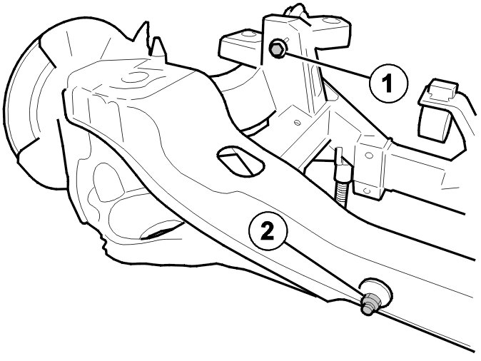 Tighten the screw for the lower control arm. Tighten. See: Tightening torque [1][2]Specifications