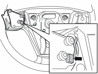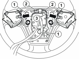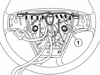 - Insert the two lugs on the reverse of the steering wheel module in the two springs. Ensure that the ignition cables are unrestricted.