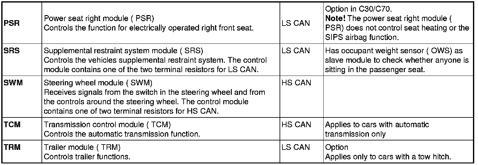 The number of control modules in the CAN varies depending on the level of equipment, the vehicle model and the structure week.