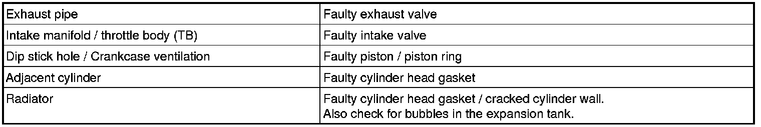 A similar check can be performed using a compression gauge by injecting oil in the cylinder. However, this can cause a build-up of coke.