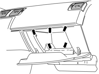 - Pull the glove compartment straight back to loosen the two hidden clips in the upper edge.
