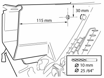 - Drill a - 10 mm (25/64") hole on the left side of the glove compartment's outer part.